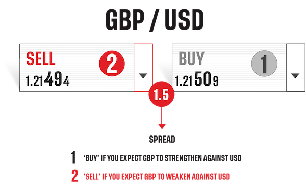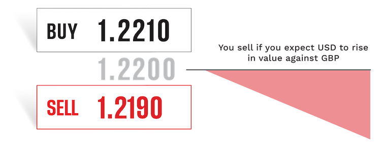 If you short (‘sell’) a currency pair, you’d be expecting the base currency to depreciate against the quote currency. Using the same GBP/USD as an example, you could short pounds for dollars. If the dollar strengthens, the price of the pound would have dropped.