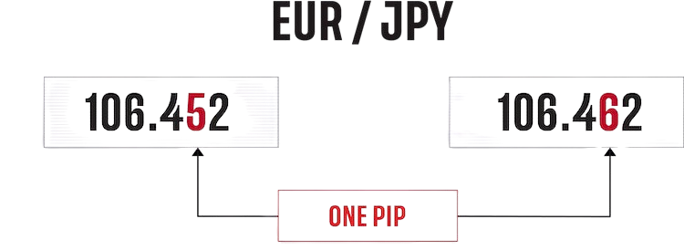 The exception to this rule is when the quote currency is listed in much smaller denominations, with the most notable example being the Japanese yen. Here, a movement in the second decimal place constitutes a single pip. So, if EUR/JPY moves from ¥172.119 to ¥172.129, it has moved a single pip.